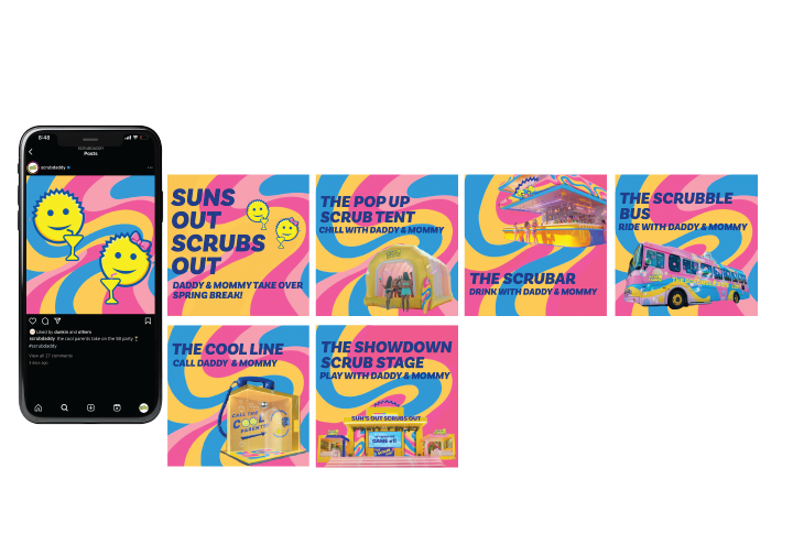The Ultimate Cool Parents campaign aims to position Scrub Daddy & Scrub Mommy as more than just a cleaning products, but as supportive companions for college-aged Gen Z, offering practical solutions with a humorous twist. Through a mix of social engagement, interactive installations, a hotline for life advice, and a memorable Spring Break Experience, Scrub Daddy & Scrub Mommy will demonstrate how cleaning can be cool and empowering, while simplifying the journey of adulting for the college crowd.